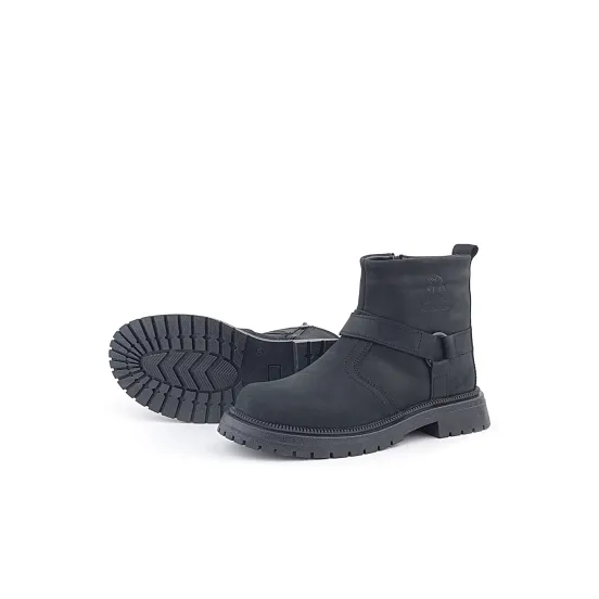 Gerçek Kürklü Hakiki Deri Siyah Nubuk Fermuarlı Çocuk Bot