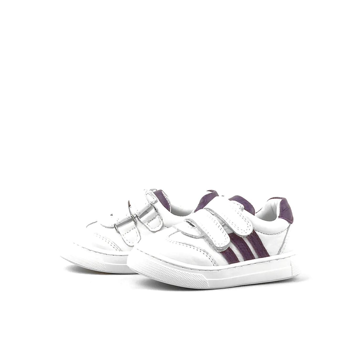 Rakerplus Paw Hakiki Deri Beyaz-Mor Cırtlı Bebek Spor Ayakkabı Sneaker